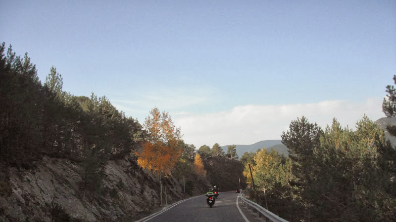 Aquesta vegada tancava el grup però ja m'imagino que en James devia anar "ballant" sobre la vfr a cada revolt, cul a l'esquerra, cul a la dreta. Revolt a l'esquerra? faig un gest cap a la dreta i tiro la moto a l'esquerra i tomba que fa fort, revolt a la dreta, doncs igual però a l'altra banda...